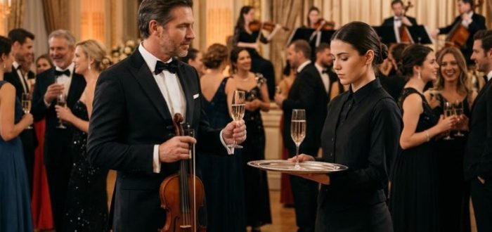 De balzaal van het Armory House schitterde als een toneeldecor voor de aristocratie. Kristallen kroonluchters wierpen licht over de gepolijste marmeren vloeren en zachte klassieke muziek zweefde boven
