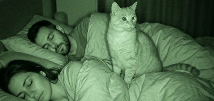 Elke nacht werd ik wakker met het vreemde gevoel dat iemand ons in de gaten hield. Onze kat zat naast het bed en staarde ons onbeweeglijk aan, en