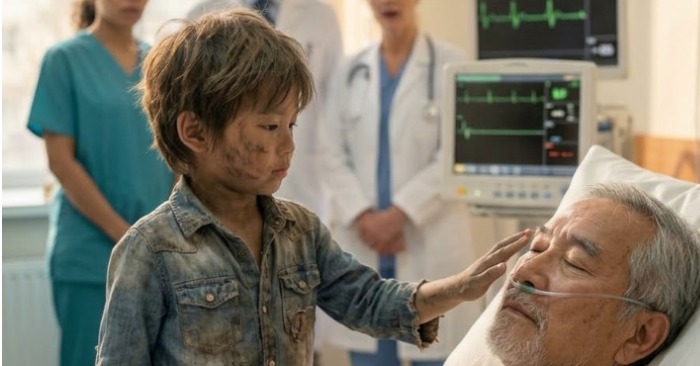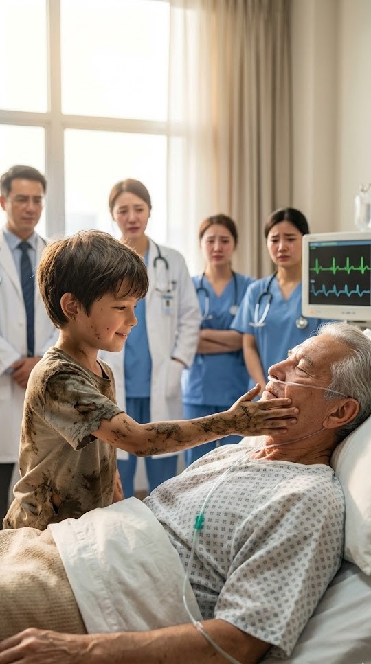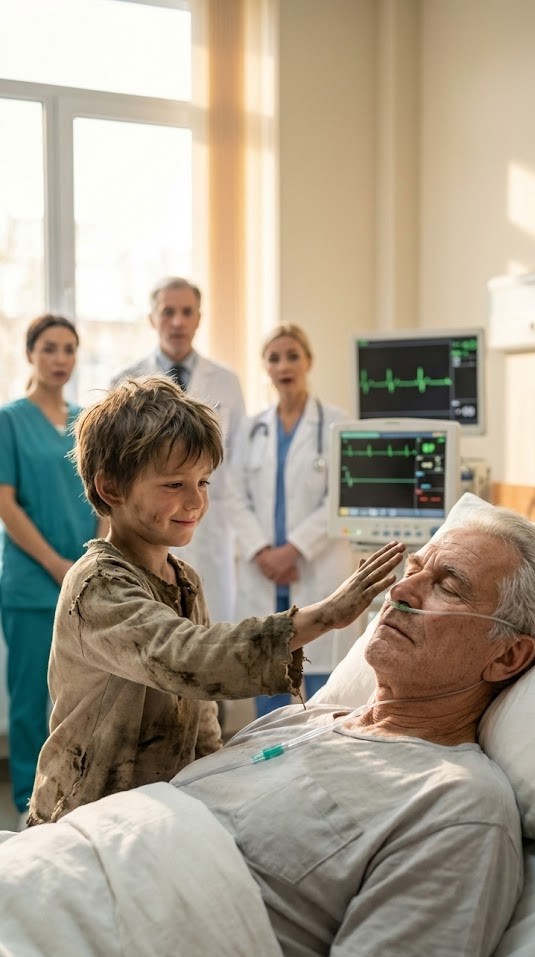 “Mijn grootmoeder lag ook zo,” fluisterde hij, hoewel er geen antwoord in de kamer kwam. “Ze zeiden dat ze er niet meer was. Maar ik praatte met haar. Ik weet dat ze me hoorde.”