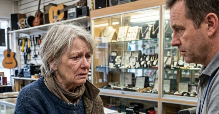 De verkoper voelde een steek in zijn hart. Hij keek nog eens naar de ring, toen naar haar handen, naar haar gezicht, en besefte dat dit geen gewoon voorwerp was. Het was een deel van haar leven.