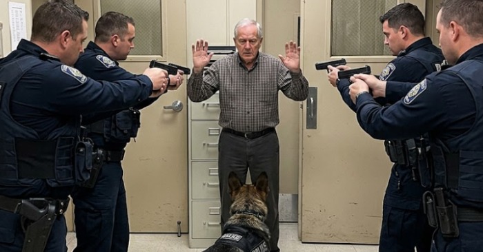 “Ik… ik heb vroeger bij de politie gewerkt. Lang geleden. Die hond… hij was mijn partner.”