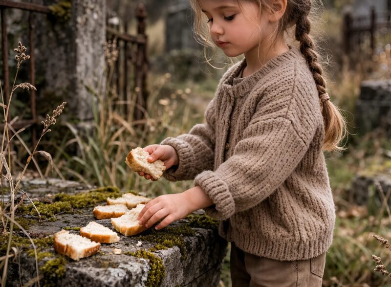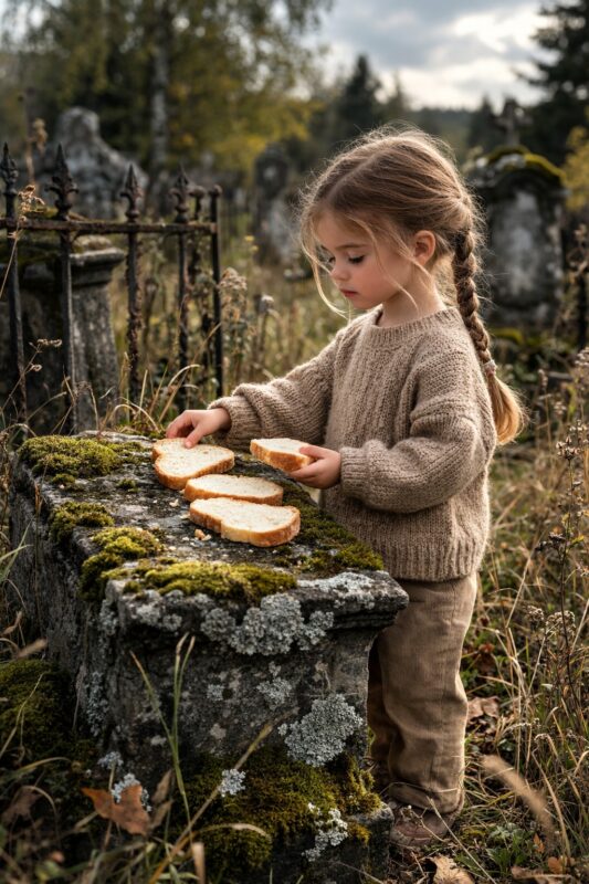 Bijna een jaar lang legde een zesjarig meisje vrijwel elke zondag stukjes brood op een van de graven. Haar moeder was ervan overtuigd dat het kind gewoon de vogels voerde. Pas toen ze hoorde waarom haar dochter het eigenlijk deed, verstijfde ze van schrik. 😨😢