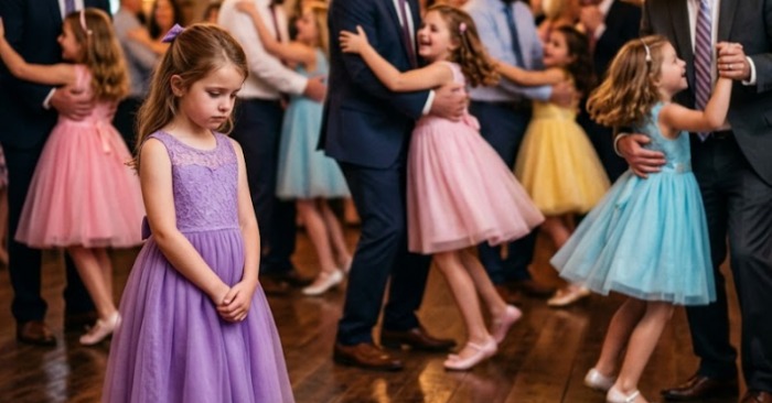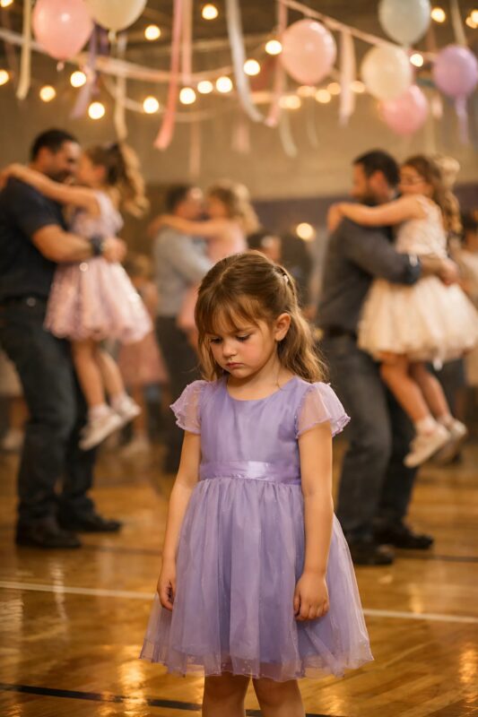 Terwijl andere kinderen met hun vaders dansten, stond zij alleen midden in de zaal te wachten… en toen gebeurde het onvoorstelbare 😲