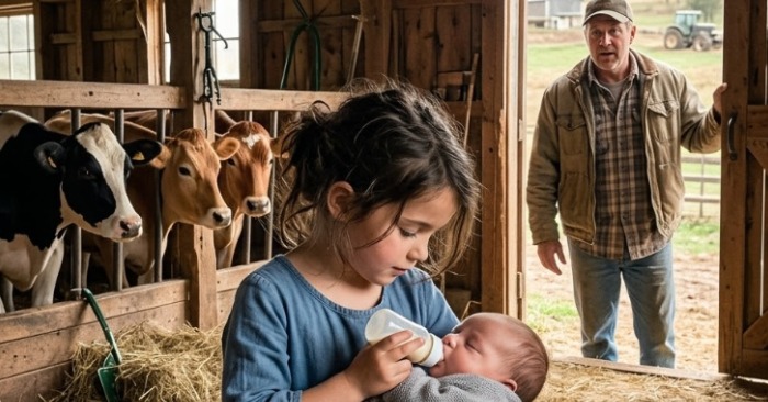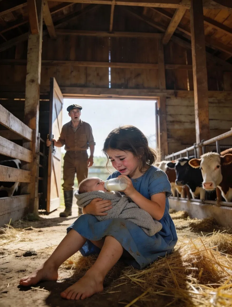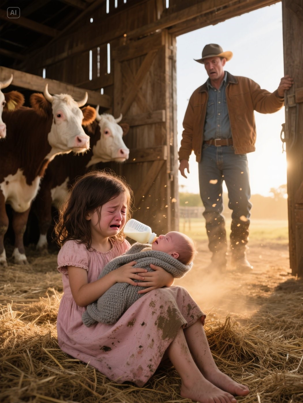 Zonder een woord te zeggen, goot hij verse melk in een pan in de keuken van de ranch en verwarmde die langzaam. Het meisje keek toe alsof ze een wonder zag. Toen hij haar een schone fles gaf, nam ze die met trillende handjes aan. De baby hapte meteen naar de speen en begon gretig te drinken, alsof zijn leven ervan afhing.