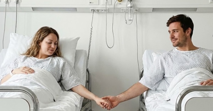 Ne-am întins unul lângă altul pe două paturi înainte de operație. S-a uitat la mine ca și cum aș fi fost atât un miracol, cât și o scenă a crimei.