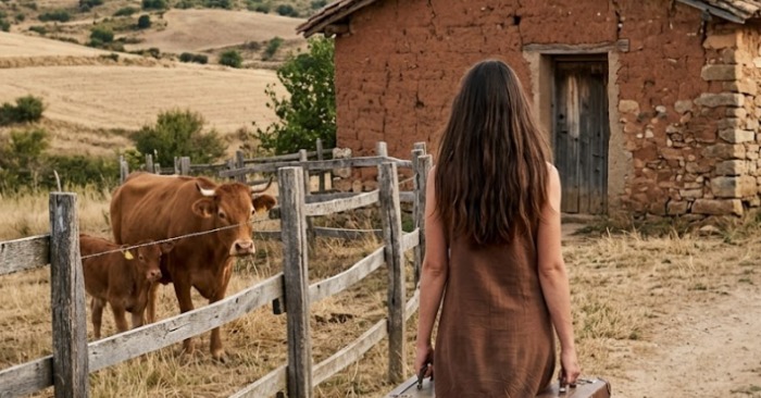 Plotseling hoorde ze een lang, hees, pijnlijk geloei. Ze liep om het huis heen en zag een verrotte houten omheining. Binnenin stond een koe. Ze was zo mager dat haar ribben bijna door haar huid heen prikten. Naast haar, op trillende poten, stond een pasgeboren kalfje. Valeria en het dier keken elkaar in de ogen. Ze waren hetzelfde – alleen, met een kind in hun hart, nergens heen te gaan, wachtend op de dood op een vergeten boerderij. Toen ze dichterbij kwam, zag ze een brandmerk in het linkeroor van de koe. Eén woord: “Esperanza.”