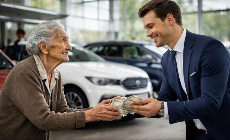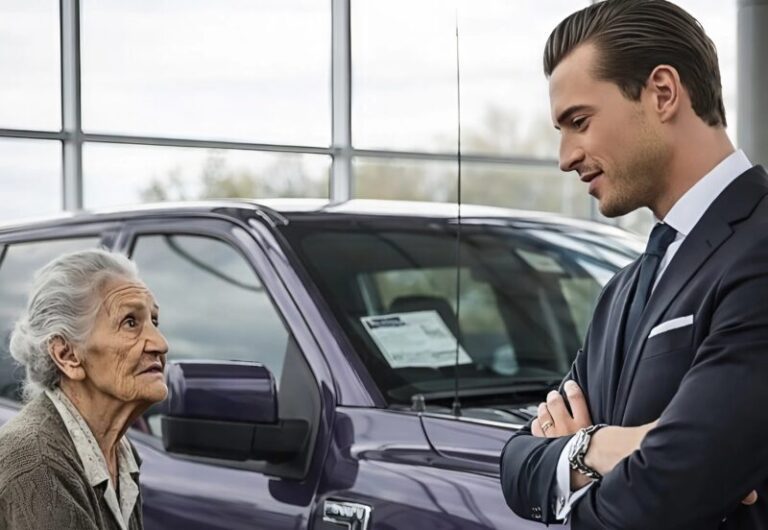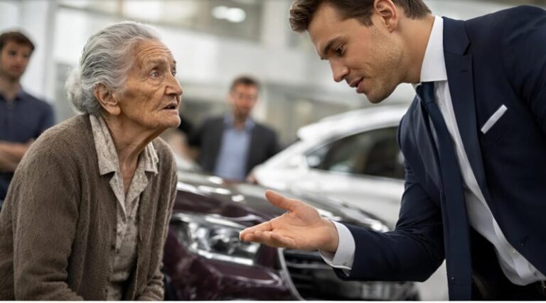 Nog geen uur later liep de bejaarde vrouw een andere autodealer binnen, recht tegenover haar. Daar werd ze begroet door een glimlachende jonge manager die zonder aarzeling zijn hulp aanbood en rustig auto’s aan haar liet zien. Hij opende de deur, legde alles uit, onderbrak haar niet en keek niet op haar neer.