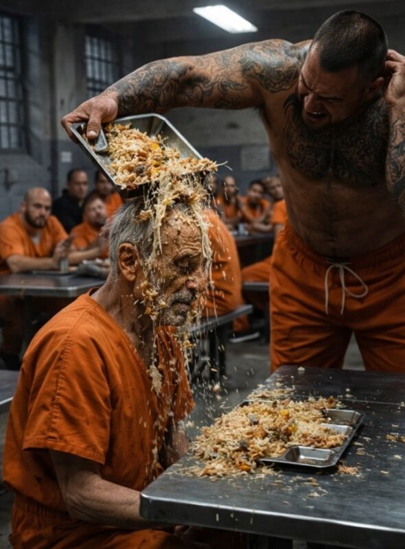 De oude man hief langzaam zijn hoofd op. Het eten liep langs zijn gezicht, maar er was geen angst of paniek in zijn blik. Alleen ijzige kalmte.