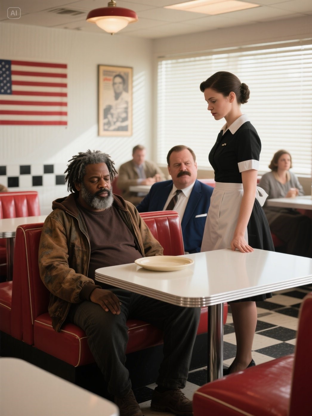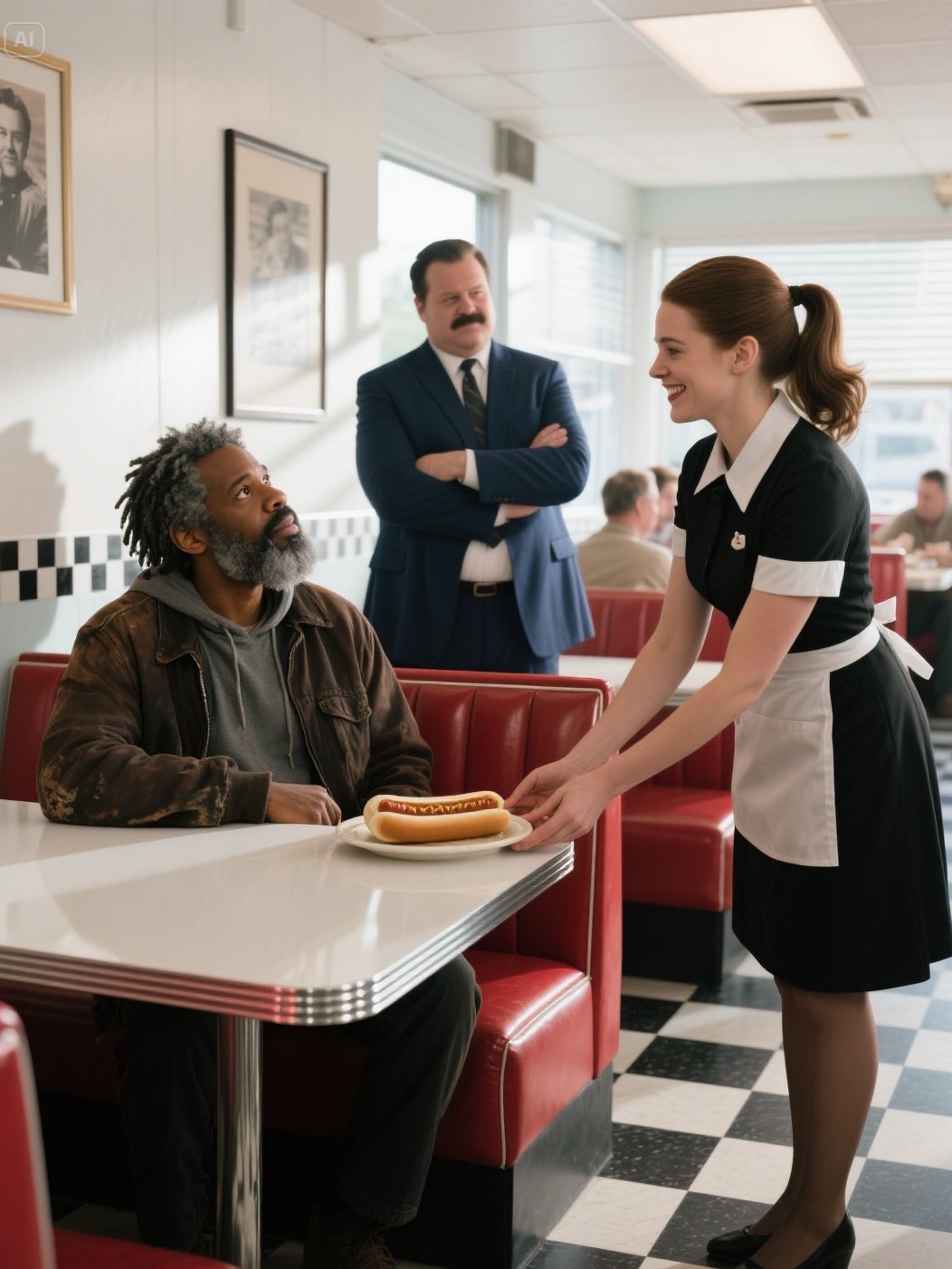 Mijn manager, Carl Whitman, was druk bezig met het geven van orders aan de kok en keek constant op zijn horloge alsof de tijd hem iets verschuldigd was. Hij was een grote man met een dikke snor en een permanent ontevreden gezicht, het type man dat geloofde dat een luidere stem meer macht betekende. Zijn favoriete bezigheid leek te zijn om werknemers in verlegenheid te brengen en te doen alsof klanten blij mochten zijn dat hij ze überhaupt binnenliet.