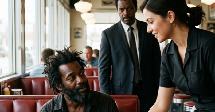 Hij zat in de hoek bij het raam, voorovergebogen alsof hij zo min mogelijk ruimte wilde innemen. Zijn jas was oud, verweerd, een kleur die ooit bruin had kunnen zijn. Zijn haar was warrig, zijn baard grijs. Zijn handen, die op tafel rustten, zagen er ruw uit – als de handen van een man die zich aan het leven vastklampte op een manier die de meeste mensen zich nooit hoeven voor te stellen.