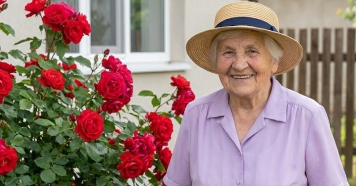 Die roos stond al in de tuin zolang ik me kon herinneren – hoog, trots, met dieprode, wijnkleurige bloemen. Het was haar favoriet. Als ze hem water gaf, praatte ze ertegen alsof het een oude vriend was.
