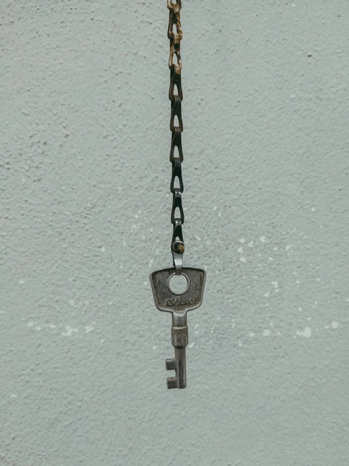 De sleutel zat aan een dun kettinkje, oud en verweerd.
