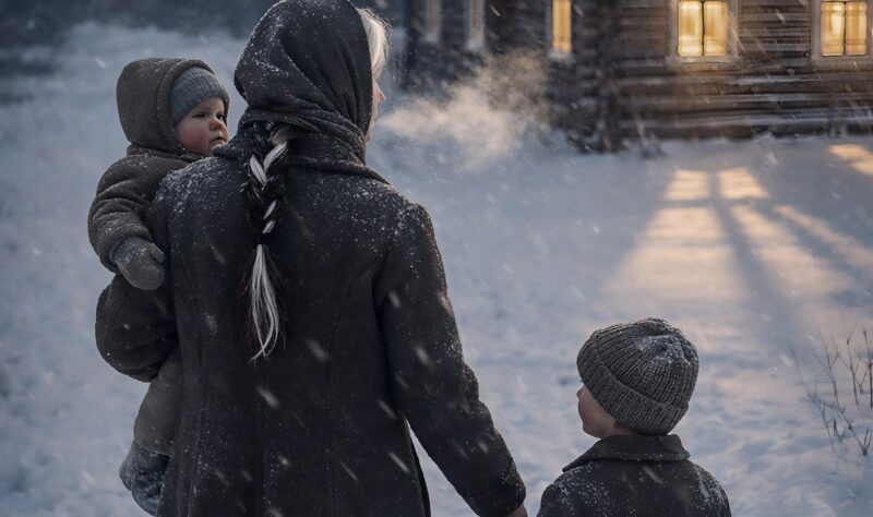 Het was december, bitterkoud, en het werd al vroeg donker. Anna klemde zich vast aan mijn hand en bleef stil. Ik droeg Lukas in mijn armen.